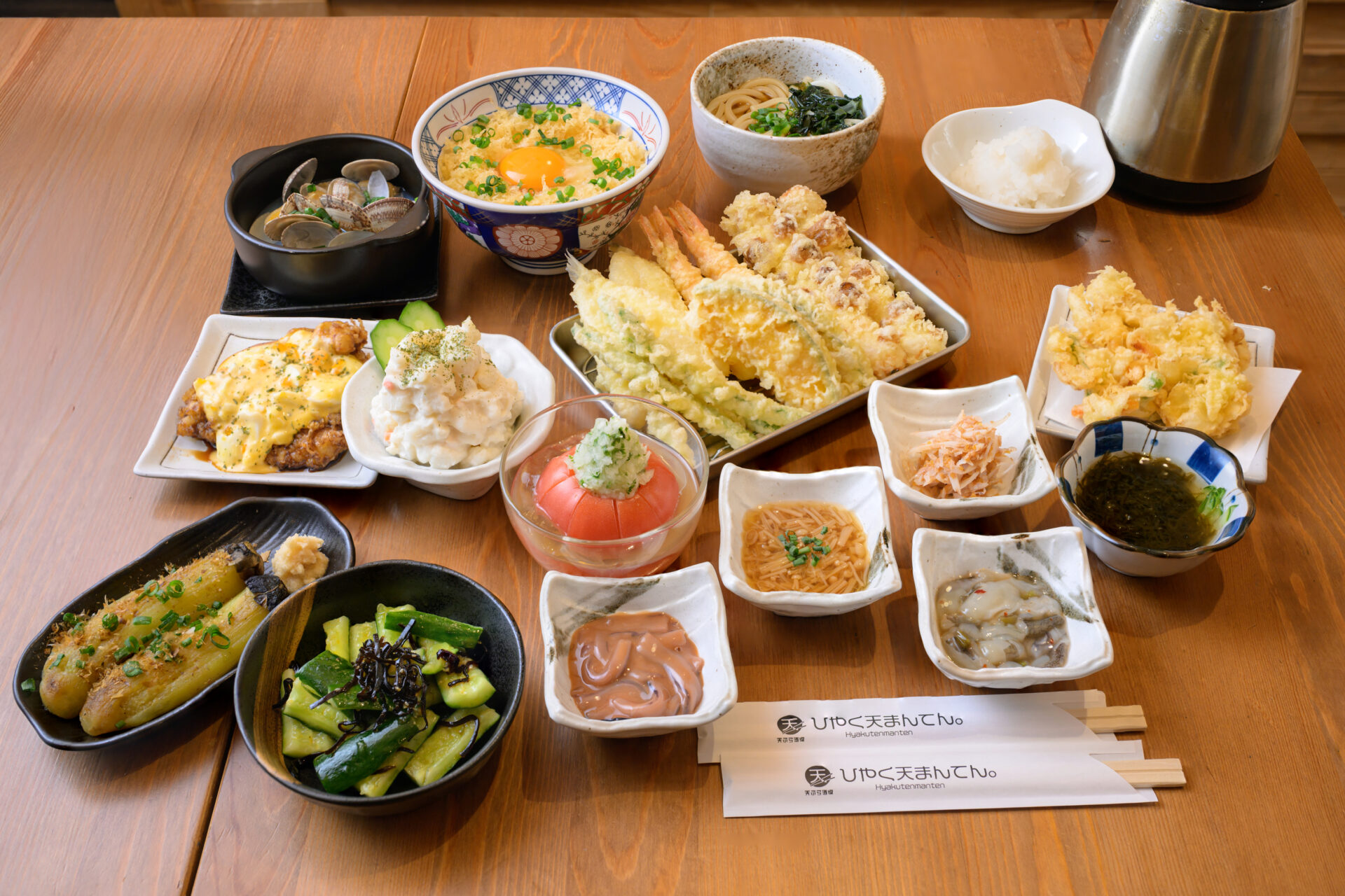 王子駅北口から徒歩1分。「ひやく天まんてん。」は、揚げたての天ぷらをリーズナブルに楽しめる居酒屋です。カウンター中心でおひとり様も入りやすく、天ぷらはもちろん、酒の肴や定食メニューも充実。仕事帰りの一杯から、気軽な食事まで、ふらっと立ち寄れる一軒です。